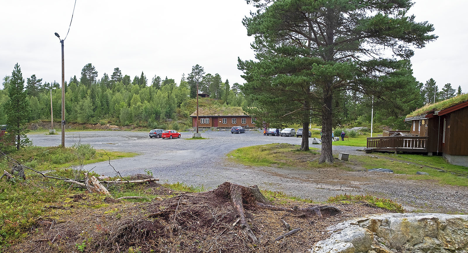 Startet kl 10 ved Ulvåshytta. Ganske grått og lett regn. Her var det mye skoleunger på tur og de voksne sto ved grillen og prata. Vi gikk nordover skistadion og bomma helt. Jeg har aldri gått skitraseen nordover om sommeren.