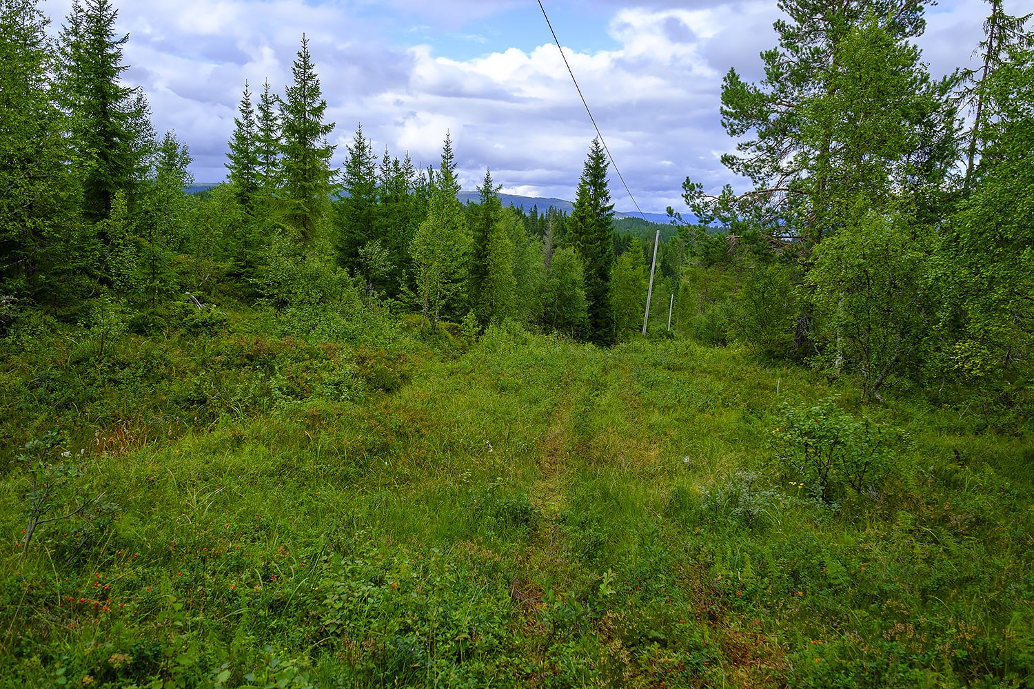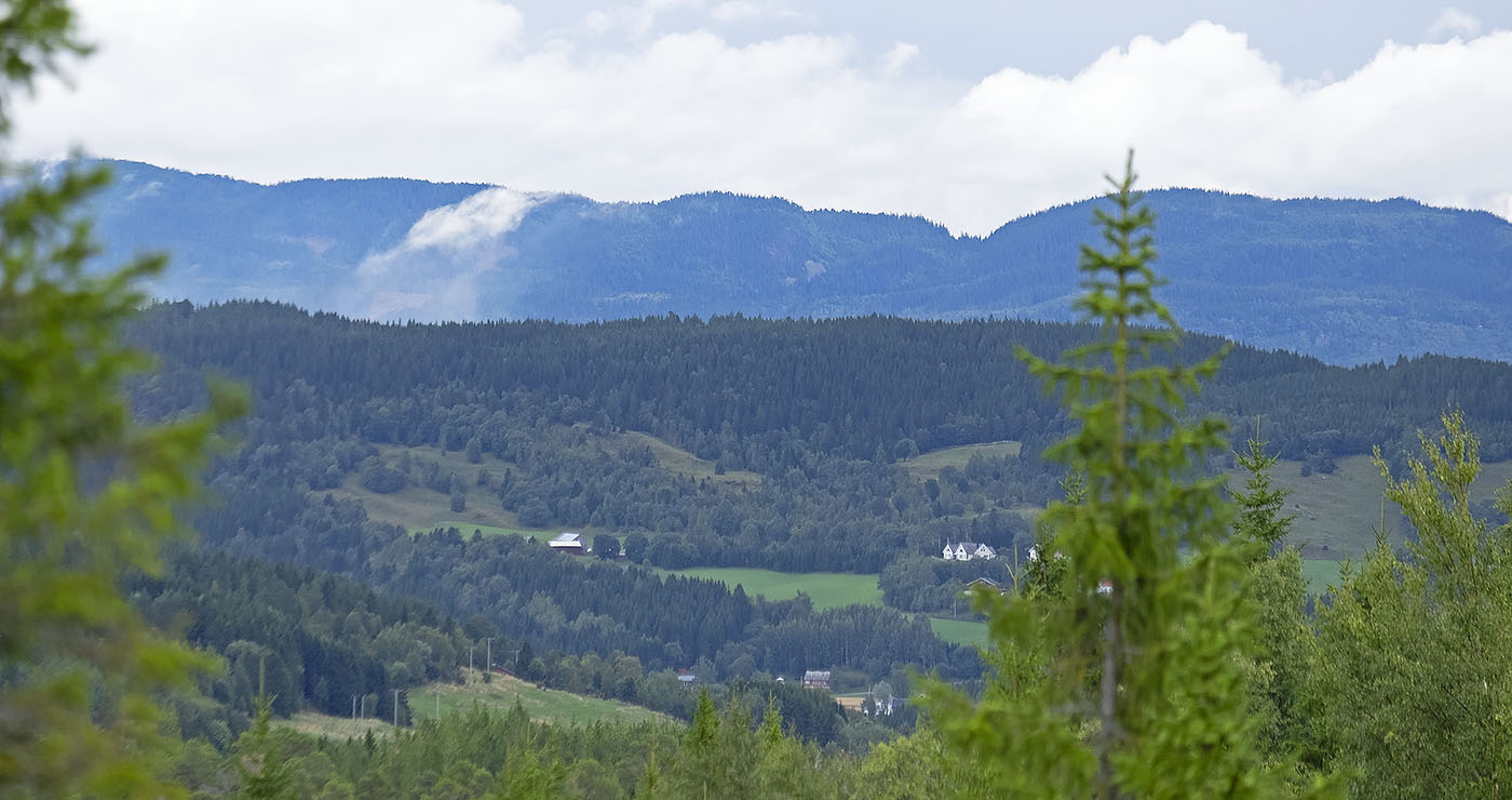 Det ble egentlig lite stas videre. Langt og vått gras, skulle hatt på meg goretex buksa igjen. Litt utsikt over Hølbekken i starten, men da vi kom over så gikk vi i en lang korridor inni granskogen nedover.