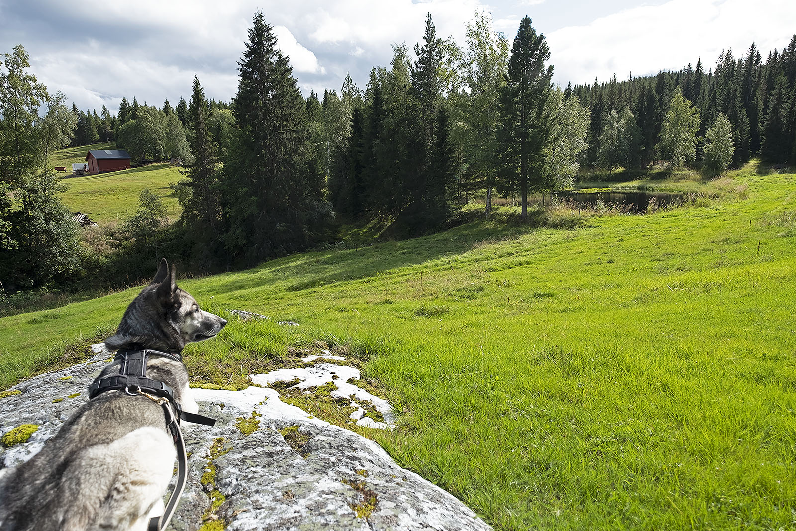 Men det fristet umåtelig med Seljan. Klokka var bare tre, vi klarte da vel å gå tilbake på 2 timer? Det var det jeg hadde i bakhodet da vi tuslet videre opp på baksiden av gården, opp skitraseen, Markaløypa. Vi fikk gå litt videre en times tid, men prøve å være tilbake her senest kl 18. Nå fra sent i august må man nesten passe på solnedgangen, lite artig å virre rundt i marka når det er mørkt, langtur med hodelykt syns jeg er lite stas.